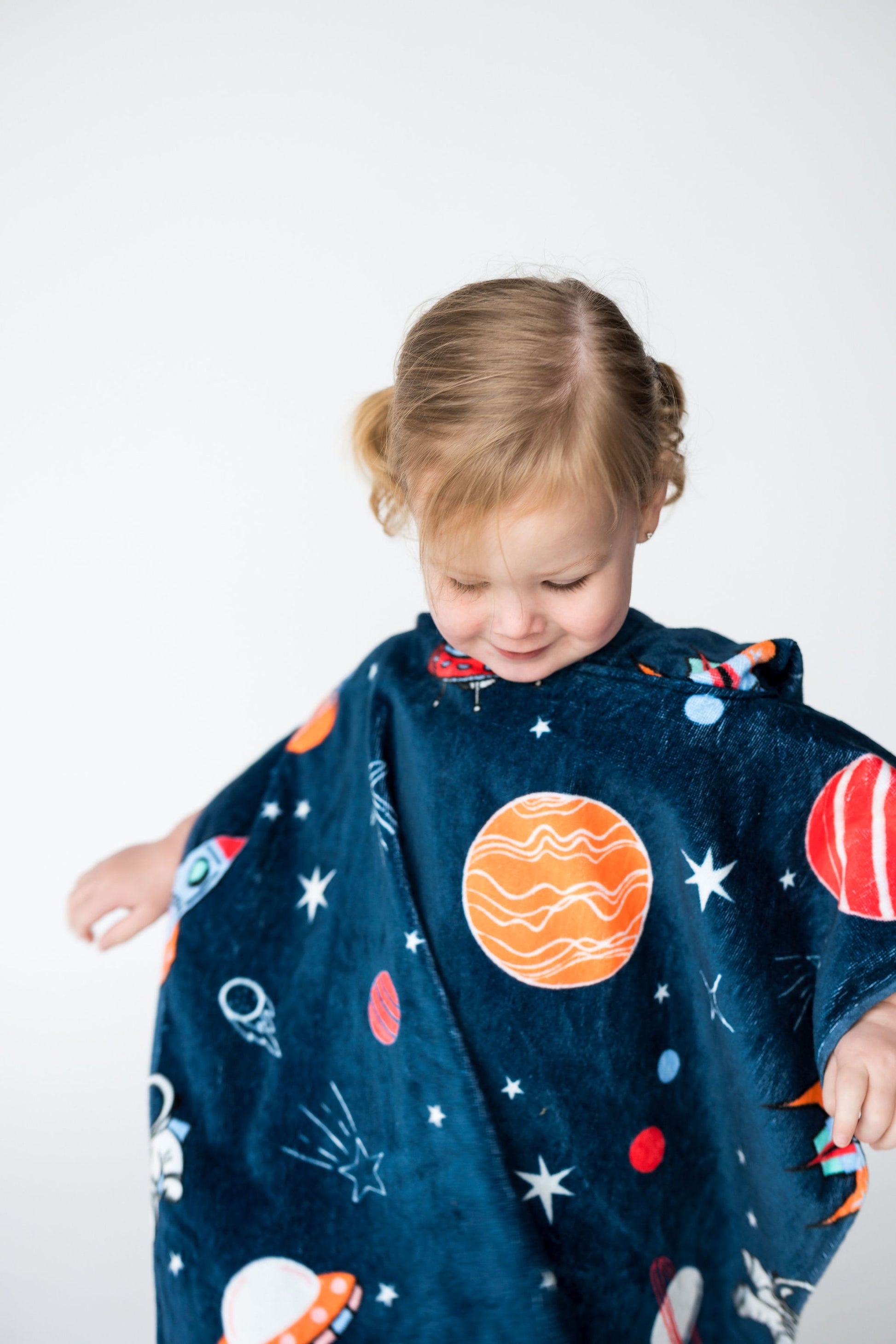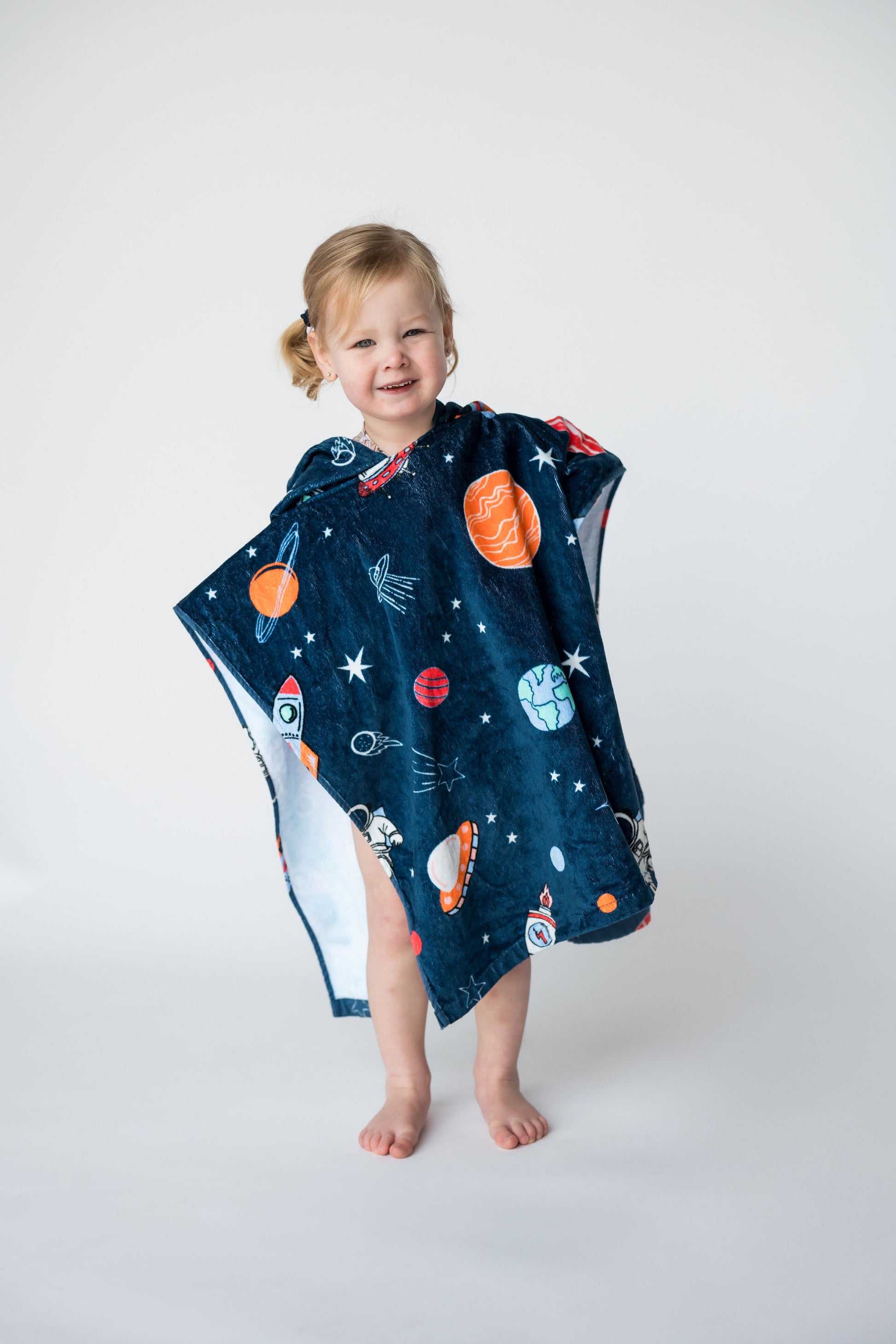 Introducing the perfect companion for all your bath or beach adventures: the Space Hooded Towel! Made from 100% cotton, this towel is warm, soft, and out of this world. Whether you're drying off or just lounging, this space themed towel has got you covered. Get ready to blast off in comfort!